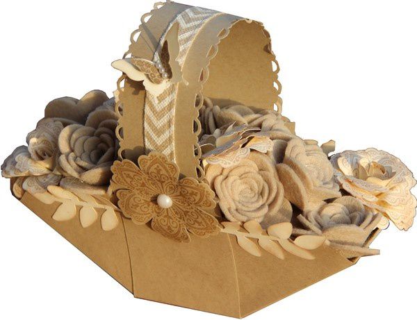 Lors de notre après midi créatif de samedi avec Nathalie et Edith, j'ai refait un panier dans les tons naturels. Ce soir je l'ai rempli de fleurs en feutrine découpées avec la big shot et d'autres en papier réalisées avec la perforatric epivoine