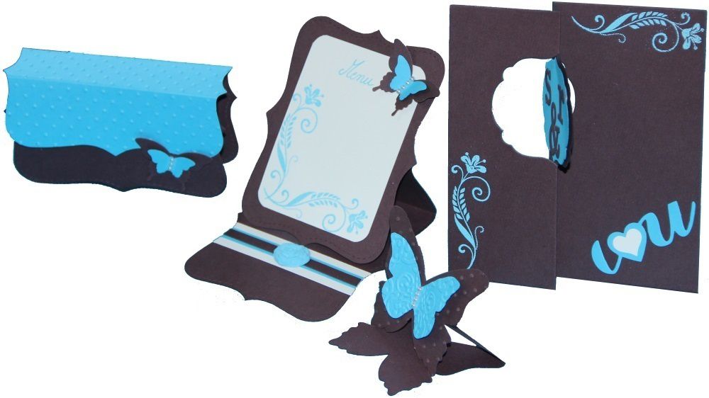 La seconde décoration est dans les tons pépite de chocolat et turquoise les mêmes éléments que sur la version naturelle et un menu en plus: