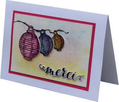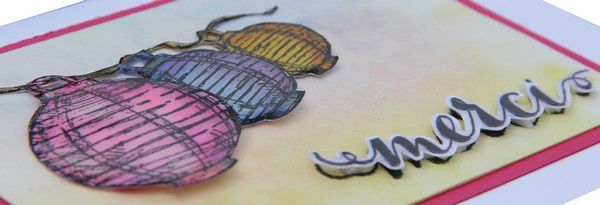 Après avoir joué avec les encres liquides, nous avons donné du volume au lanterne en papier en les collant d'un côté et e, les mettant en volume avec la mousse 3d (stampin' dimensionnal réf 104430)