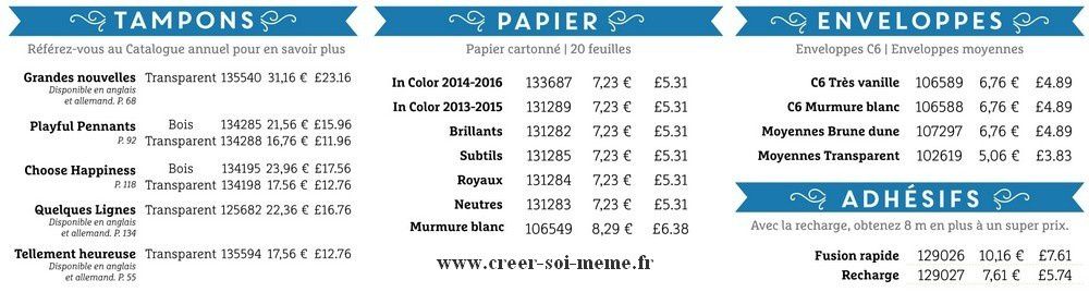 Du 1er au 6 octobre 2014, vous pourrez bénéficier d'une réduction de 15 % sur l'achat d'une sélection de papier, d'enveloppes et d'adhésifs ! Certains tampons bénéficient même de 20 % de réduction !