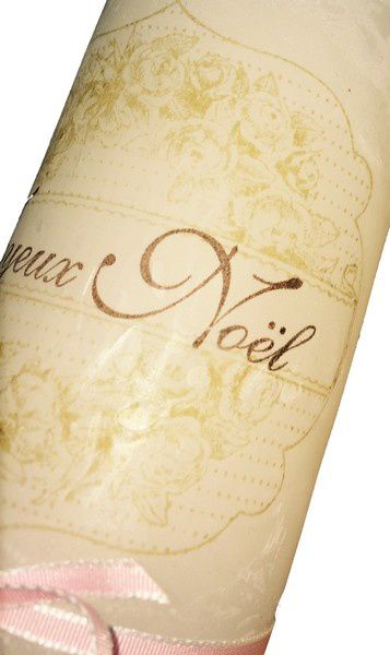 Après réflexion je me décide à tamponner le motif sur un papier de soie avant de découper précisément le motif puis de le poser sur la bougie avant de recouvrir l'ensemble avec du papier sulfurisé ou avec le support en silicone (réf 127583) et de chauffer l'ensemble avec mon pistolet chauffant et voici le résultat: