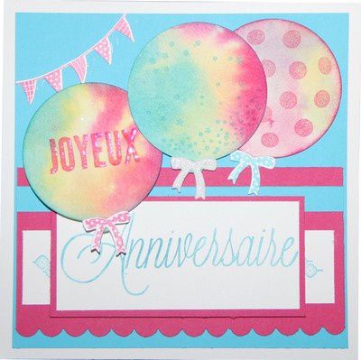 Dans le catlogue printemps / été, le set de tampons "fêtes toutes faites" m'a donné envie de travailler avec mes encres sur du papier aquarellable….