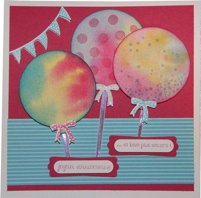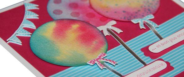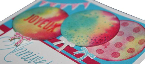 Deux des trois ballons sont collés avec de la mousse 3d Stampin'dimensionals tout comme la banderoles