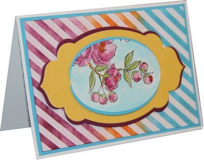 Un de mes cadeaux préférez que vous pouvez gagner par tranche de 60€ d’achat pendant la promotion Sale A Bration est le papier magique! Voici une carte que j’ai créé avec le papier magique dont le motif est réalisé avec des bandes que j’ai colorisé avec mes doigts en mousse: