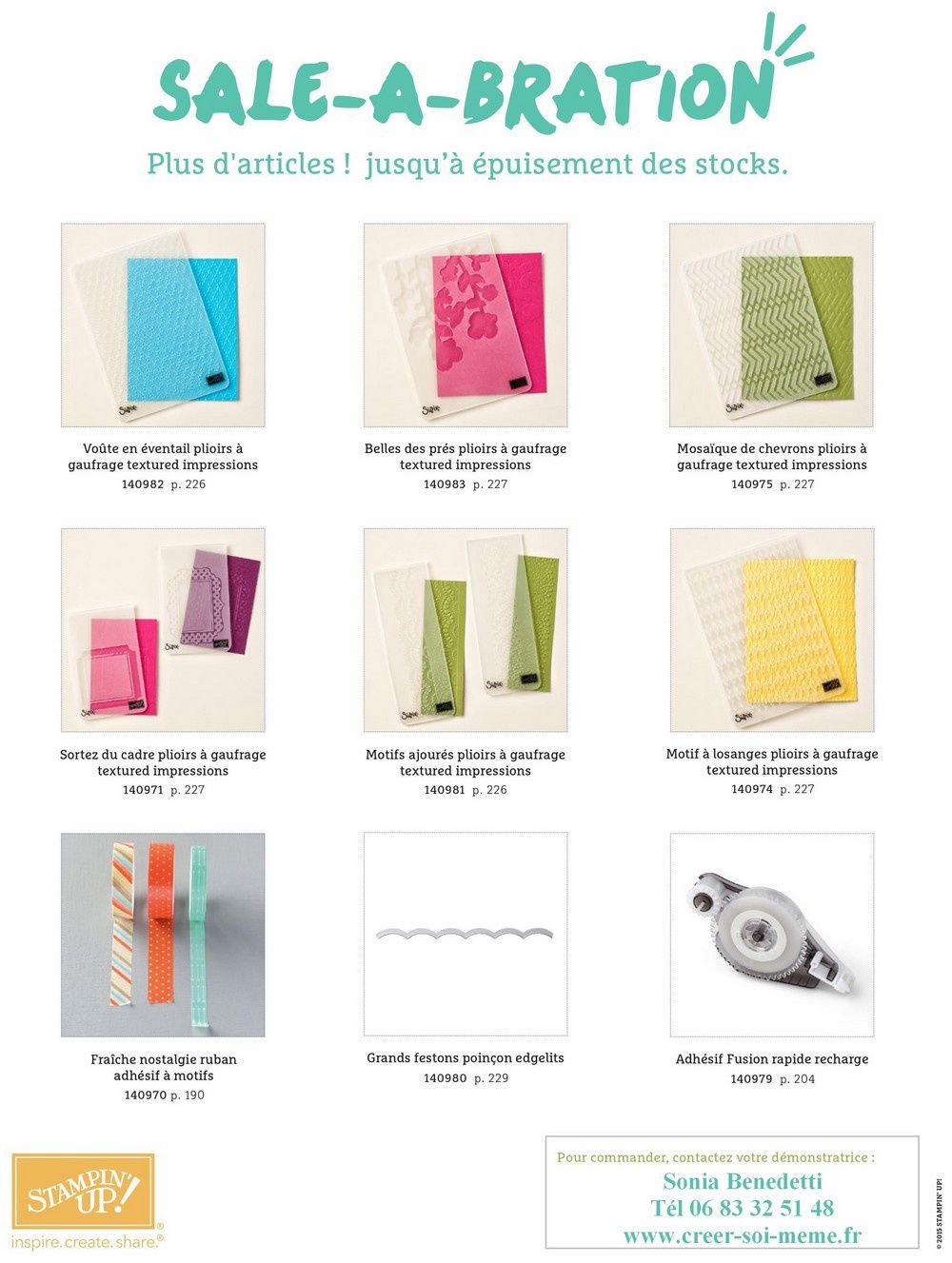 Si vous avez envie de profiter de cette super promotion Sale A Bration pour commander, pour accueillir une rendez vous créatif ou devenir démonstratrice, n’hésitez pas à venir à un de mes rendez-vous créatifs ou à commander directement sur ma boutique en ligne: