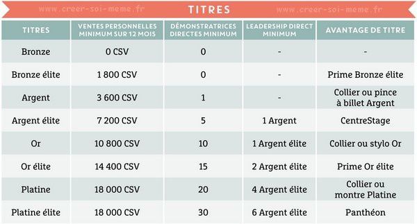 Les démonstratrices ont toujours un montant de vente trimestriel minium qui est de 300 CSV ce qui correspond à 360.01€ de ventes TTC en France.