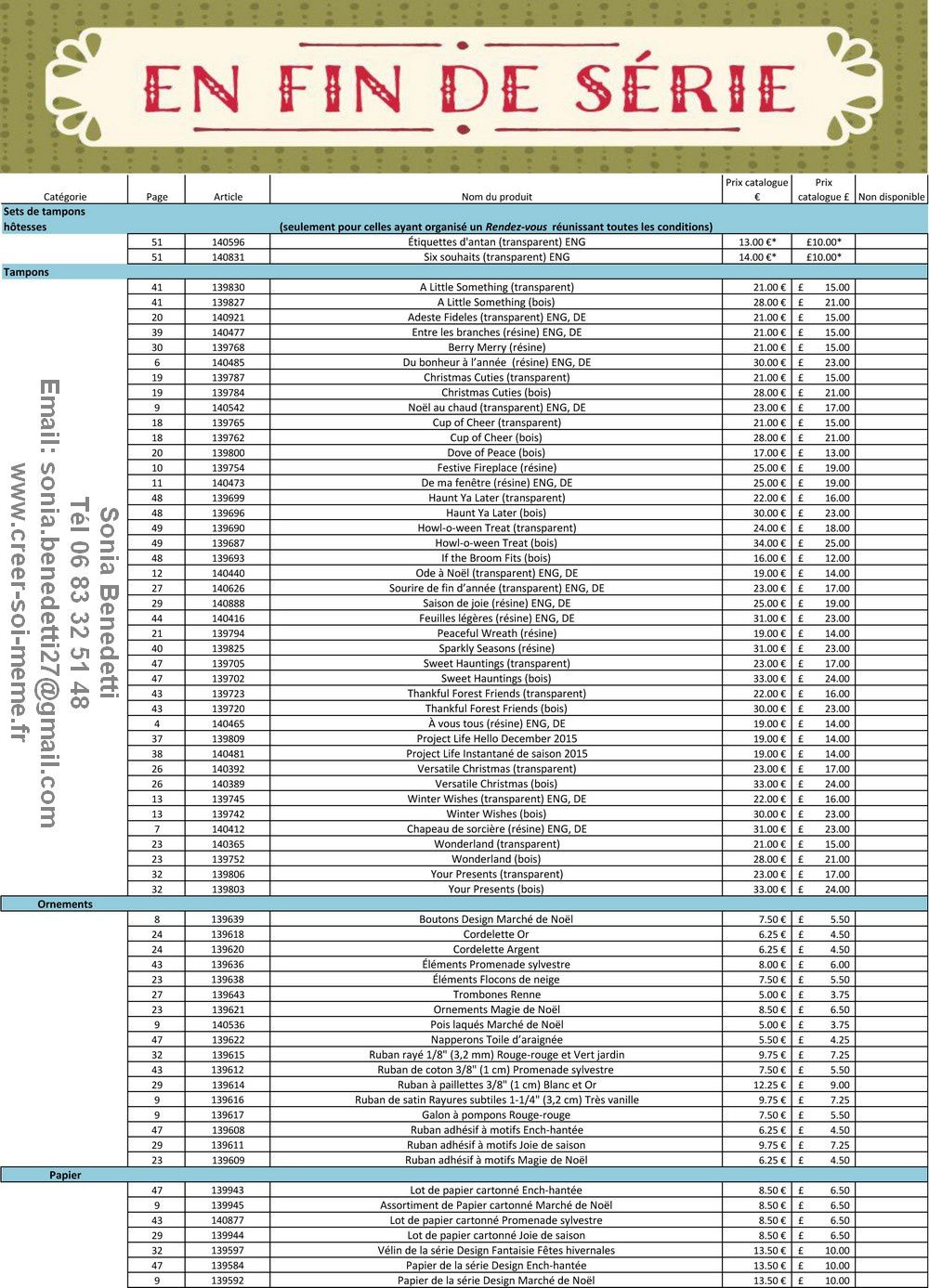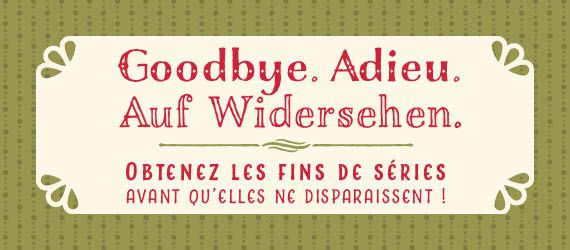 Nous disons adieu aux produits en fin de série du catalogue automne/hiver ; mais avant cela, Stampin’Up! offre à chacune la chance de commander ses préférés. Les produits en fin de série ne seront disponibles que jusqu’au 4 janvier ou jusqu’à épuisement des stocks.