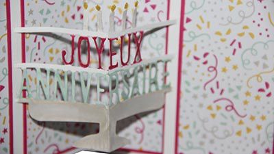 Pour fêter ces 8 ans j’ai créé une carte avec un double effet pop up :