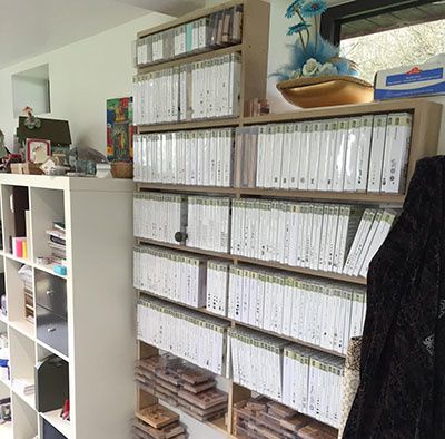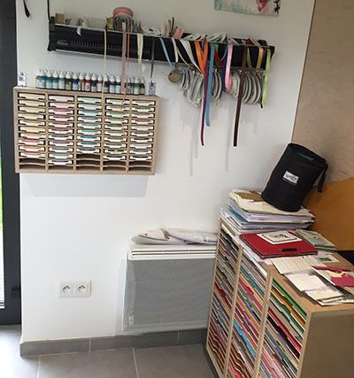 Tous mes tampons sont regroupés dans un nouveau rangement que j’avais dessiné en fonction de la place diponible et que mon homme m’a gentillement construit.