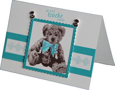 Comme vous le savez déjà j’adore le nouveau set de tampons « Bébé ourson » et voici le résultat quand je le travaille avec les deux autres sets de tampons que j’ai eu à On Stage: