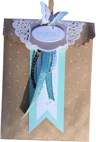 Un petit napperon de papier, des rubans, des tampons, des perforatrices et voici le résultat…