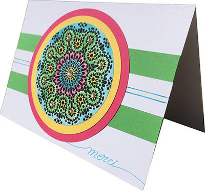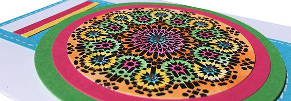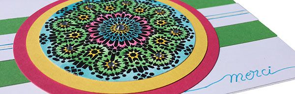 Voici de nouveaux essais avec le set de tampons « moroccan nights » qui me donne des envies de mandala, de couleurs….