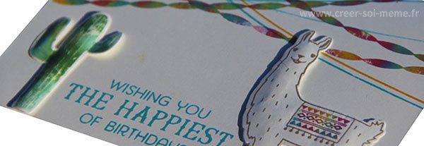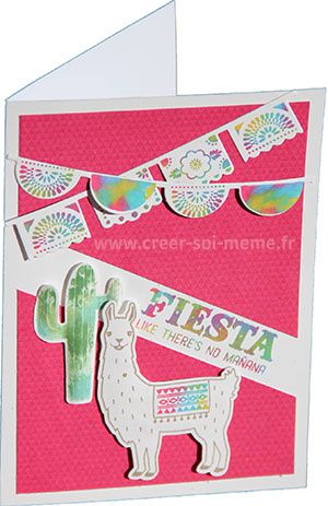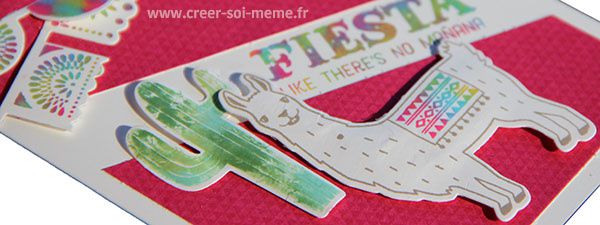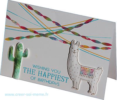Pour l’encrage des fanions et les cactus, j’ai utilisé la technique de la lingette bébé avec les couleurs des papiers de la série design « Anniversaire festif »