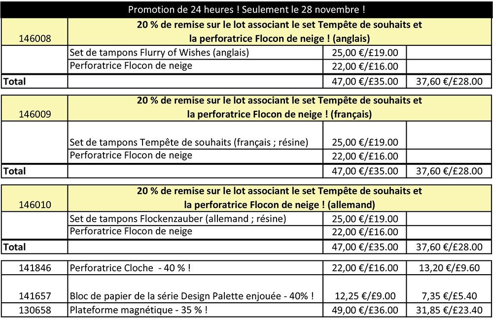 La dernière promotion journalière est prévue demain et durera seulement 24H et se terminera lundi 28 novembre 2016 à 22:5O et attention, c'est dans la limite des stocks disponibles!