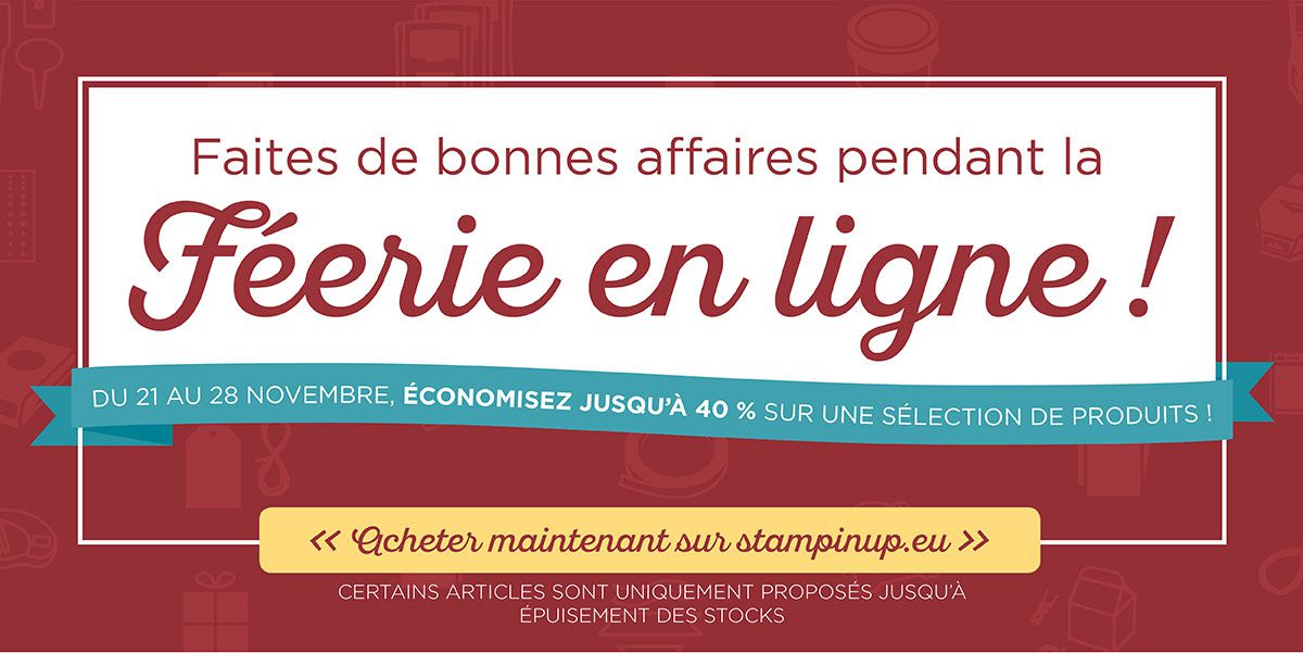 La Féerie en ligne, la promotion spéciale en ligne de Stampin'Up!, offre des remises pouvant atteindre 40 % sur une grande sélection de produits !