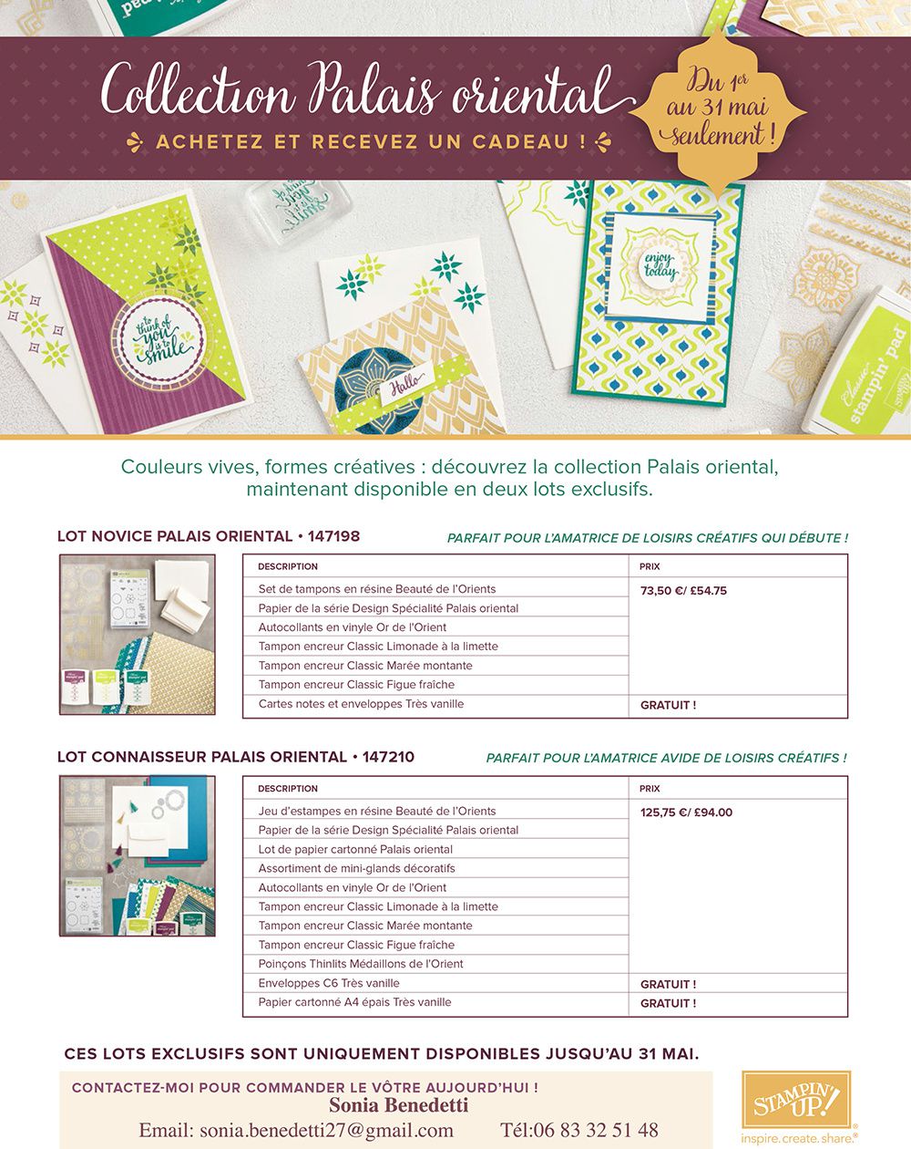 Mettez la main sur les produits colorés et exotiques de la collection Palais oriental un mois avant le lancement officiellement du nouveau catalogue annuel 2017-2018 ! Vous pouvez dès aujourd'hui, le 1er mai, commander ces produits en avant première.