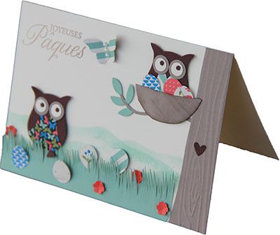 Je vous souhaite à tous de belles fêtes de Pâques en famille avec une carte réalisée avec la perforatrice chouette qui nous quitte…