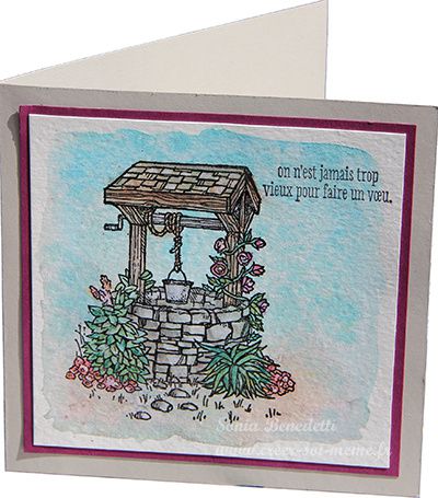Voici une carte avec les techniques d'aquarelle que j'ai confectionné avec le set Puit d'espoir: