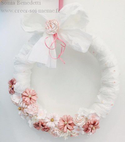 Après cette couronne qui peut aussi bien servie pour une chambre de petite, un mariage ou un anniversaire, j’ai décidé de confectionné le centre de table assorti que je vous ferai découvrir demain.