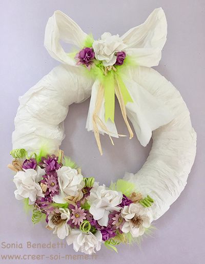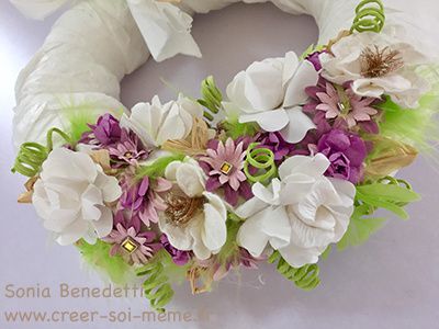 Ce week-end nous étions invités pour fêter les 84 ans de ma marraine. Je lui avais confectionné une couronne de fleurs pleine de fraîcheur: