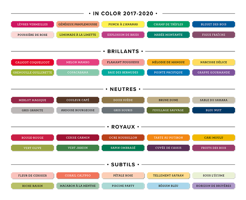 Le lot de tampons encreurs Classic In Color 2017-2020 (article 150289) est exclusif à cette promotion et il comprend toutes les couleurs In Color, celles de 2017-2019 et celles de 2018-2020.