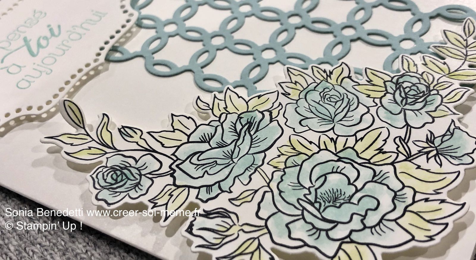 J'ai colorié les roses avec mon aqua'painter (pinceau à réservoir d'eau) et les encres à base d'eau Stampin'Up!