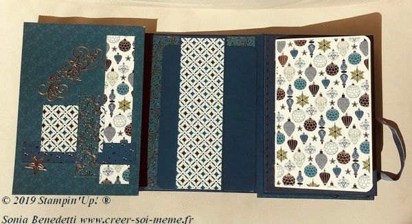 Voici un album, sur le principe de l'album extensible que j'avais posté début août, que j'ai confectionné avec les nouveaux papiers de Noël Stampin'Up! qui sortirons le 4 septembre.