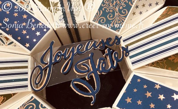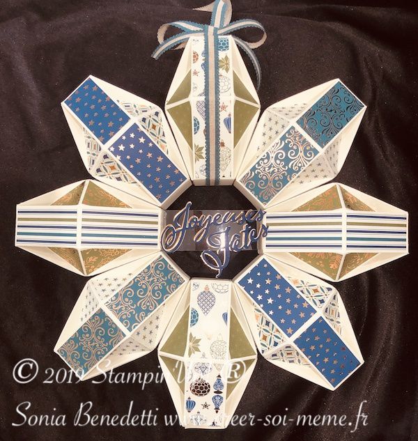 Cette couronne est confectionnée à partir de 8 boîtes dont je vous prépare la vidéo pour apprendre à la faire.