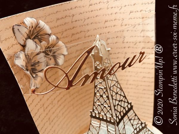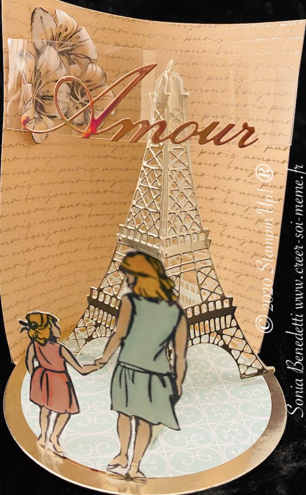 Je me suis amusée avec la découpe tour Eiffel que j'aime beaucoup et un nouveau set de tampons Beautiful moments.