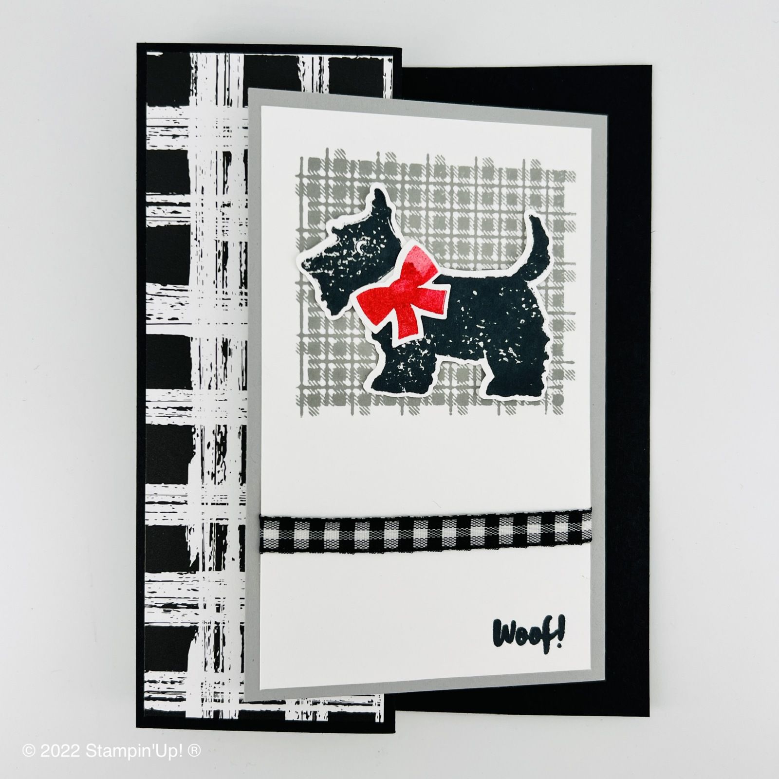 L'échanges des swaps est également une source d'inspiration pour de futures présentations ou tout simplement pour montrer à mes clientes des créations réalisées avec des produits que je n'ai pas encore comme cette carte avec la perforatrice Terrier écossais de Darla Morris