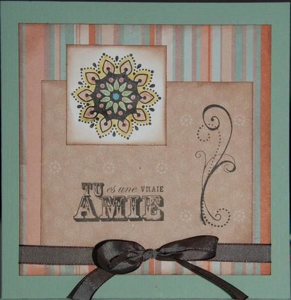 J’avais fait une autre carte avec le set de tampons « Amitié sincère » que j’ai offert à mon amie Valérie mais j’ai supprimé la photo par erreur alors je ne peux pas vous la montrer. J’avais