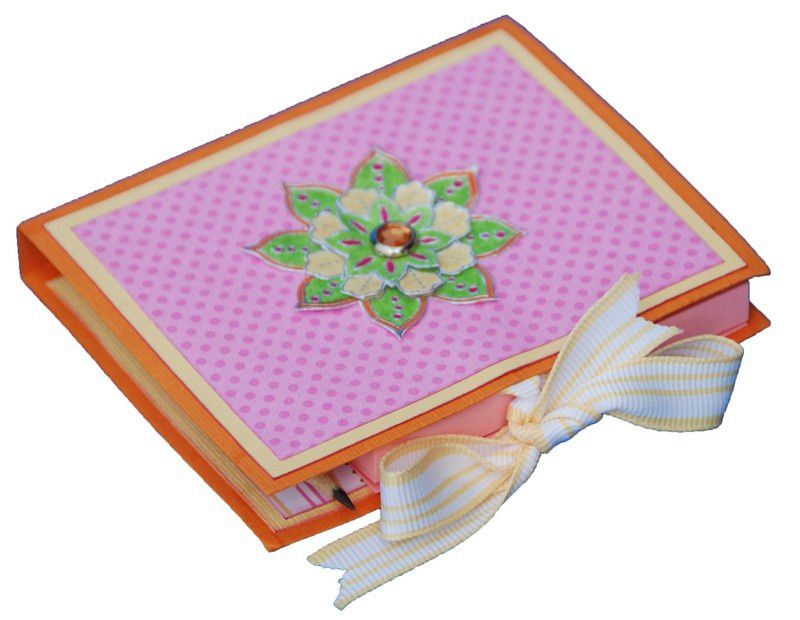 Un petit calepin à post it et son crayon confectionné avec le kit de papiers « pétales en fête » (réf 113676)