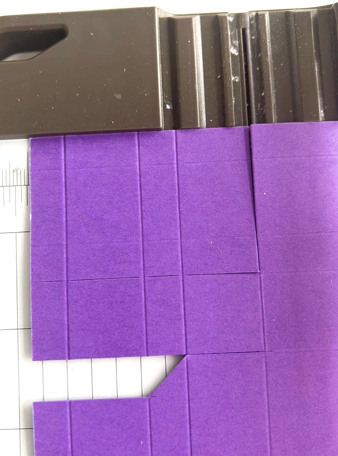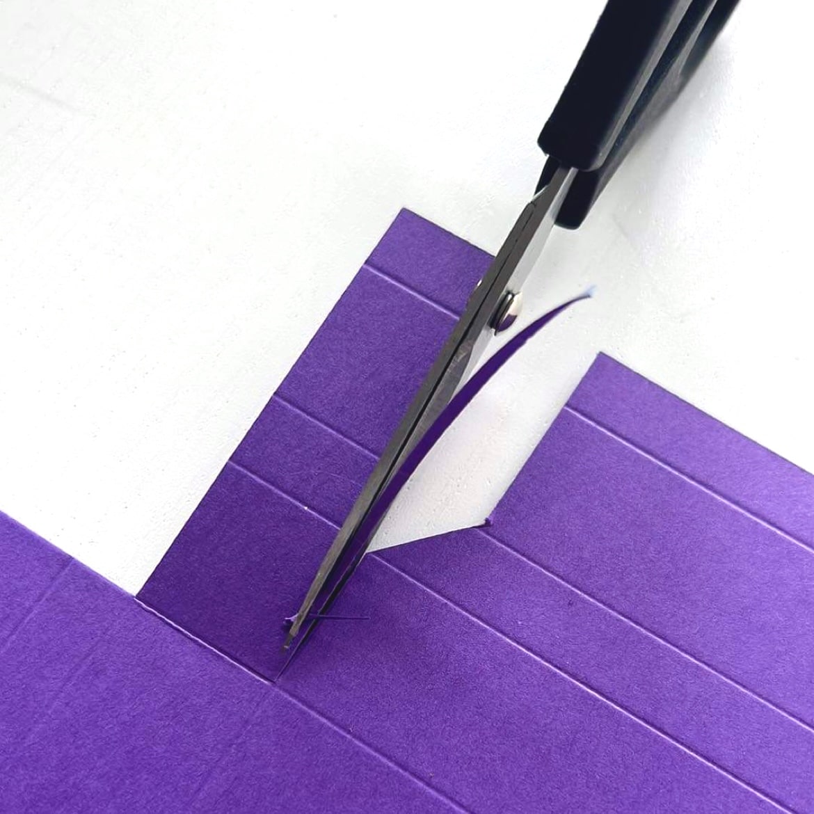 Sur la longueur de 29,7 cm couper à 5,9cm jusqu’au 3e pli.