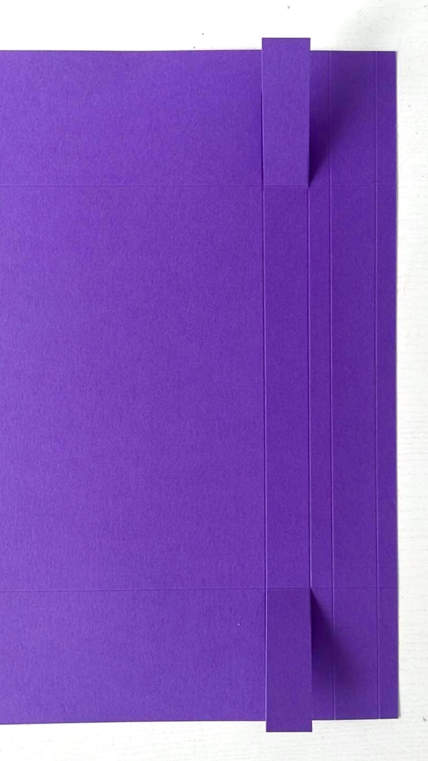 Sur la longueur de votre feuille (côté de 29,7cm) marquez un pli à 5,9 de chaque côté