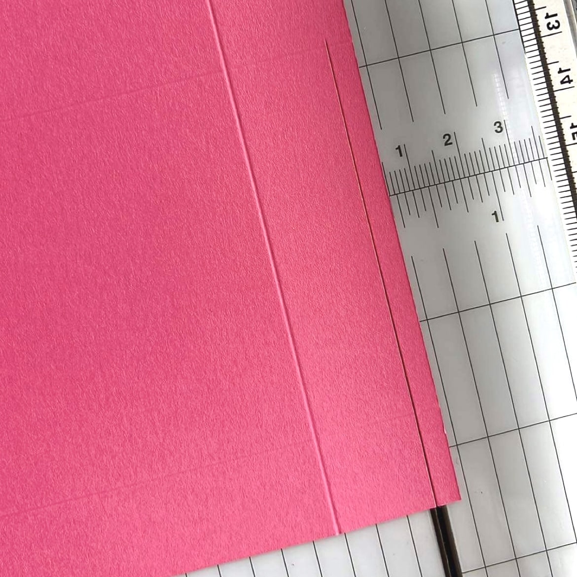 Sur la largeur de 20,9cm qui à le premier pli à 2cm du bord (attention l’autre largeur à le premier pli à 2,5cm du bord) venir couper à 0,5 cm et 20,4cm jusqu’au deuxième pli.