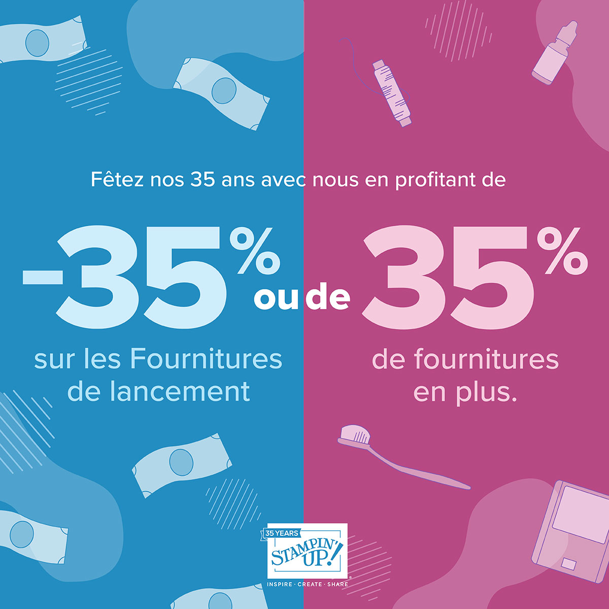 Du 3 au 31 octobre, toute personne qui se joint à la communauté créative Stampin’ Up! en tant que démonstratrice peut choisir entre une réduction de 35 % sur le prix des Fournitures de lancement et 35 % de produits GRATUITS avec ses Fournitures de lancement ! Quelle bonne affaire !