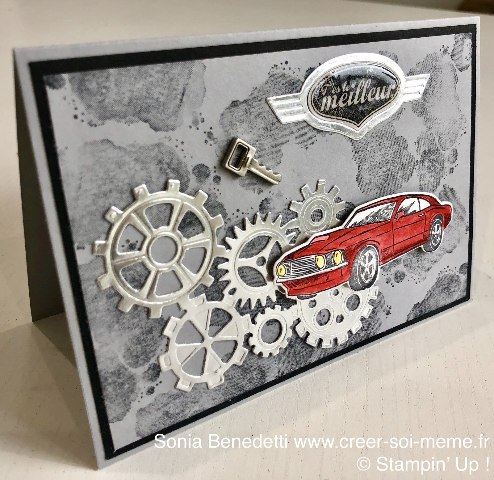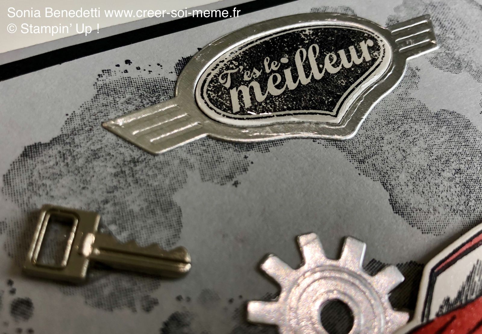 Stampin'Up! a pensé à tout, il y a même des petits embellissements en métal en fore de clef à molette ou de voiture…