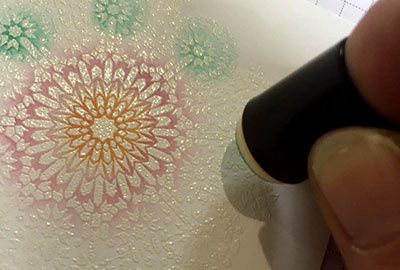 - l'utiliser comme une colle pour fixer une poudre à embosser avant de la faire chauffer. Cette technique peut être utilisée pour coloriser avec les encreurs à base d'eau de Stampin'Up!. Elle a l'avantage de faciliter la colorisation en "arrêtant" l'eau sur le dessin embossé
