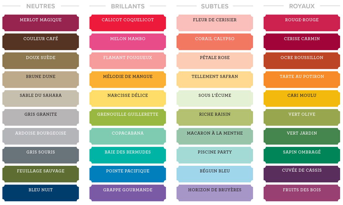 et voici les nouvelles familles de couleurs qui seront disponibles à partir de 1er juin 2018
