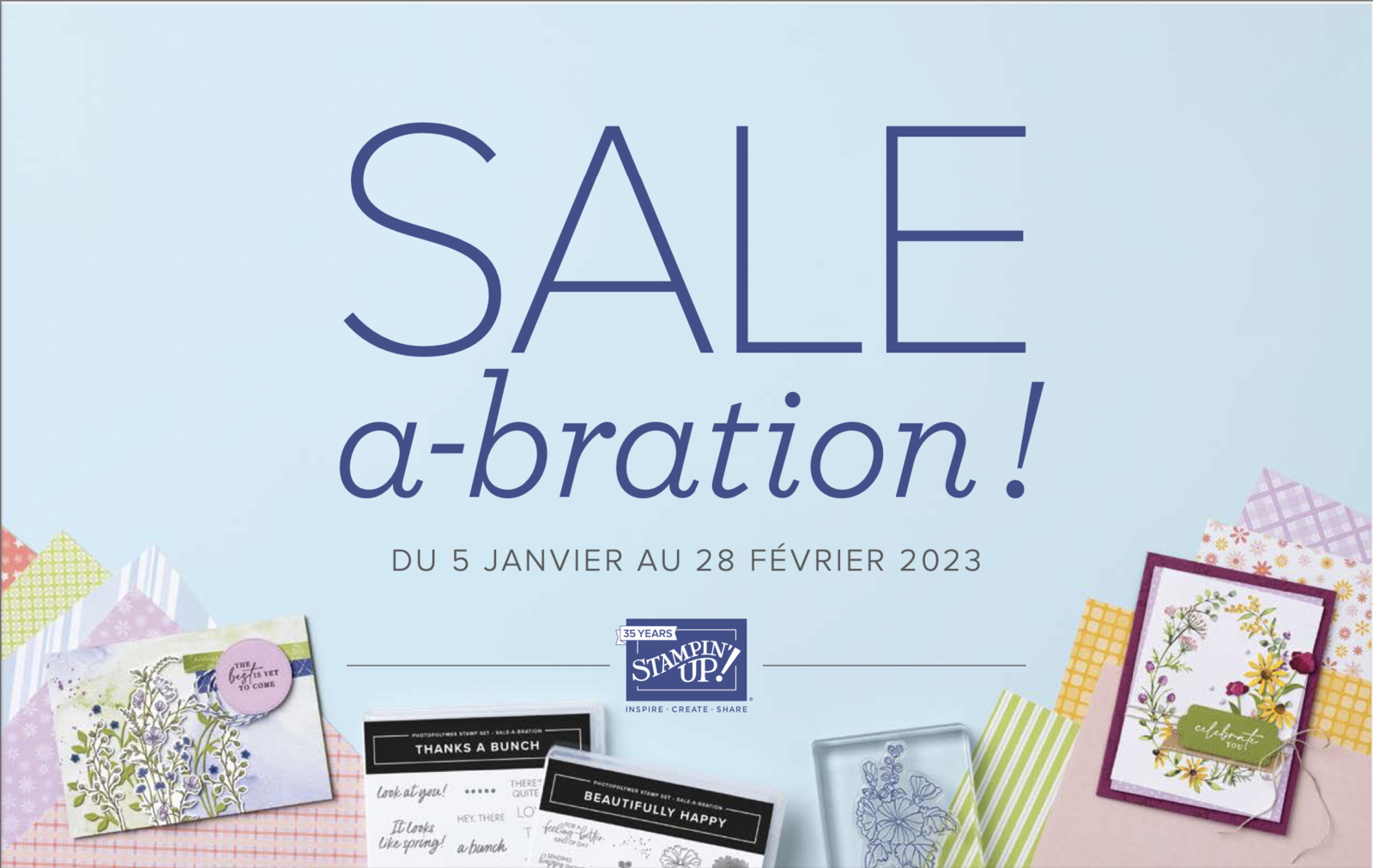 - Que vous vouliez commander en ligne ou participer a un atelier : avec votre commande, c’est un set de tampons Sale A Bration en plus pour 60€ d’achats ! (ou 2 sets pour 120€….). Par exemple, si vous achetez 180 €, vous pouvez choisir trois articles de niveau 1 ou un article de niveau 1 et un article de niveau 2.