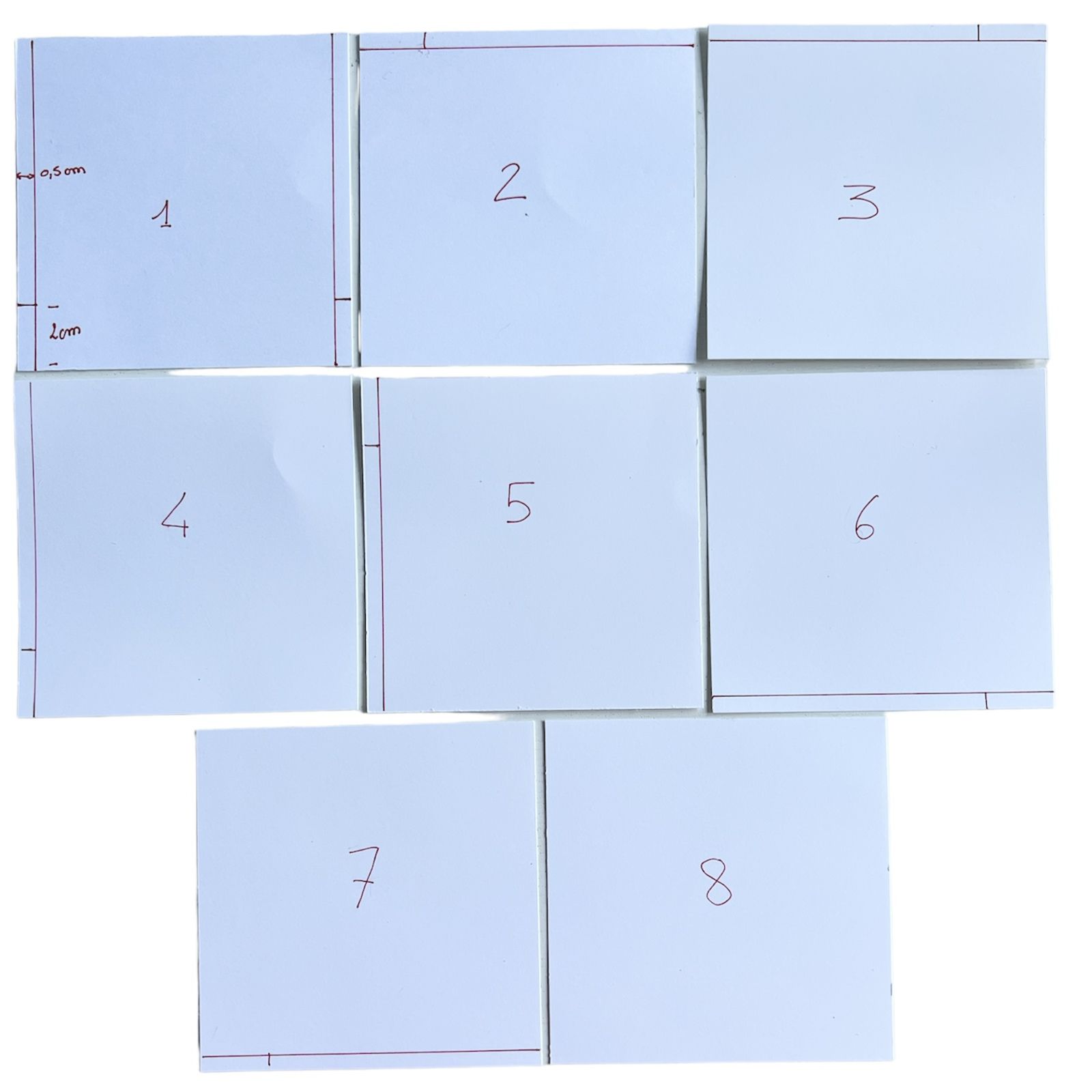 Pour vous aider, voici une photo avec les repères sur les 8 carrés: